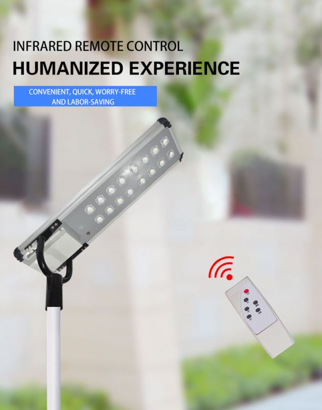 Công suất tấm pin mặt trời/Size: 6V 40W (Silicon đơn tinh thể), 700*340*25mm Chất liệu/kích thước bóng đèn: Nhôm/717*357*70mm Dung lượng Pin: Pin lithium LIFEPO4 3.2V 30AH LED chip: 3030 Led,120/PCS Hiệu suất đèn Luninous: 130LM/W Nhiệt độ màu sắc: 3500K-7500K Tiêu chuẩn chống nước: IP65 Diện tích chiếu sáng:200㎡ Thời gian sạc Pin: 5-8 giờ (thời tiết bình thường) Thời gian chiếu sáng: 12-15 giờ, 2-3 ngày nồm ẩm. Bảo hành: 2 năm Độ cao lắp đặt:5-6m Chế độ điều khiển:Điều khiển quang học + Điều khiển từ xa+cảm ứng radar |
