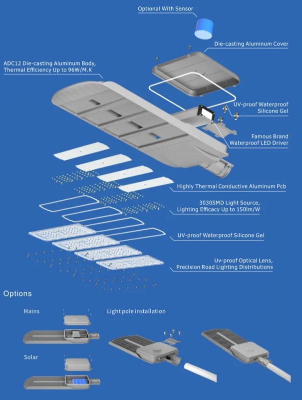 | Loại/Số hiệu: JY-B006 Công suất:150W Công suất tấm pin mặt trời/Size: 18V 60W (Silicon đơn tinh thể), 670*640*30mm Chất liệu/kích thước bóng đèn: Nhôm đúc 597*263*75mm Dung lượng Pin: Pin lithium LIFEPO4 3.2V 60AH Chip LED: 5054 led,150/PCS Hiệu suất đèn Luninous: 130LM/W Nhiệt độ màu sắc: 3500K-7500K Tiêu chuẩn chống nước: IP65 Diện tích chiếu sáng: 250㎡ Thời gian sạc Pin:5-8 giờ (thời tiết bình thường) Thời gian chiếu sáng: 12-15 giờ, 2-3 ngày nồm ẩm. Bảo hành: 2 years Độ cao lắp đặt: 6-7m Chế độ điều khiển: Điều khiển quang học + Điều khiển từ xa |
