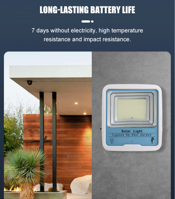 | Loại/Số hiệu:JY-A008 Công suất:200W Công suất tấm pin mặt trời/Size: 6V 25W (Silicon đa tinh thể loại A), 350*530*15mm Chất liệu/kích thước bóng đèn: Nhôm đúc/257*286* 70mm Dung lượng Pin:Pin lithium LIFEPO4 3.2V 20AH Chip LED: 2835 led,519/PCS Hiệu suất đèn Luninous 120LM/W Nhiệt độ màu sắc: 3500K-7500K Tiêu chuẩn chống nước: IP65 Diện tích chiếu sáng: 150㎡ Thời gian sạc Pin:5-6 giờ (thời tiết bình thường) Thời gian chiếu sáng: 12-15 giờ, 2-3 ngày nồm ẩm. Bảo hành:2 năm Độ cao lắp đặt:3-5m Chế độ điều khiển:Điều khiển quang học + Điều khiển từ xa |