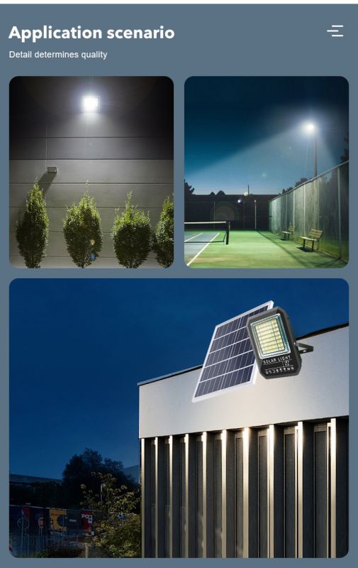 | Loại/Số hiệu:JY-A023 Công suất:200W Công suất tấm pin mặt trời/Size: 6V 25W (Silicon đa tinh thể loại A), 350*530*16mm Chất liệu/kích thước bóng đèn: Nhôm đúc/200*250* 65mm Dung lượng Pin:Pin lithium LIFEPO4 3.2V 20AH Chip LED: 2835 led,144/PCS Hiệu suất đèn Luninous 120LM/W Nhiệt độ màu sắc: 3500K-7500K Tiêu chuẩn chống nước: IP65 Diện tích chiếu sáng: 100㎡ Thời gian sạc Pin:5-6 giờ (thời tiết bình thường) Thời gian chiếu sáng: 12-15 giờ, 2-3 ngày nồm ẩm. Bảo hành:2 năm Độ cao lắp đặt:3-5m Chế độ điều khiển:Điều khiển quang học + Điều khiển từ xa |