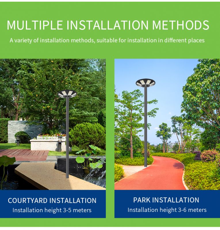 | Đèn đĩa bay UFO Loại/Số hiệu:JY-C052 Công suất/Watt: 600W 2 cups Công suất tấm pin mặt trời/Size: 6V 20W (Silicon đa tinh thể loại A), 346*416mm Chất liệu/kích thước bóng đèn: ABS/550*550*100mm Dung lượng Pin: Pin lithium LIFEPO4 3.2V 20AH LED chip: 5730 Led,672/PCS Hiệu suất đèn Luninous: 120LM/W Nhiệt độ màu sắc: 3500K-7500K Tiêu chuẩn chống nước: IP65 Diện tích chiếu sáng:150㎡ Thời gian sạc Pin: 5-8 giờ (thời tiết bình thường) Thời gian chiếu sáng: 12-15 giờ, 2-3 ngày nồm ẩm. Bảo hành: 2 năm Độ cao lắp đặt: 5-6m Chế độ điều khiển:Điều khiển quang học + Điều khiển từ xa+cảm ứng radar |