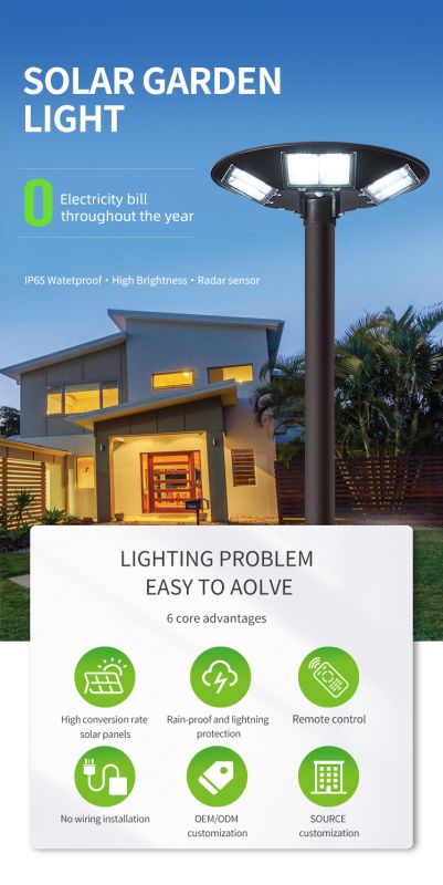 | Đèn đĩa bay UFO Loại/Số hiệu:JY-C054 Công suất/Watt: 500W 2 cups Công suất tấm pin mặt trời/Size: 6V 20W (Silicon đa tinh thể loại A), 543*543mm Chất liệu/kích thước bóng đèn: ABS/550*550*125mm Dung lượng Pin: Pin lithium LIFEPO4 3.2V 20AH LED chip: 5730 Led,630/PCS Hiệu suất đèn Luninous: 120LM/W Nhiệt độ màu sắc: 3500K-7500K Tiêu chuẩn chống nước: IP65 Diện tích chiếu sáng:150㎡ Thời gian sạc Pin: 5-8 giờ (thời tiết bình thường) Thời gian chiếu sáng: 12-15 giờ, 2-3 ngày nồm ẩm. Bảo hành: 2 năm Độ cao lắp đặt: 4-6m Chế độ điều khiển:Điều khiển quang học + Điều khiển từ xa+cảm ứng radar |