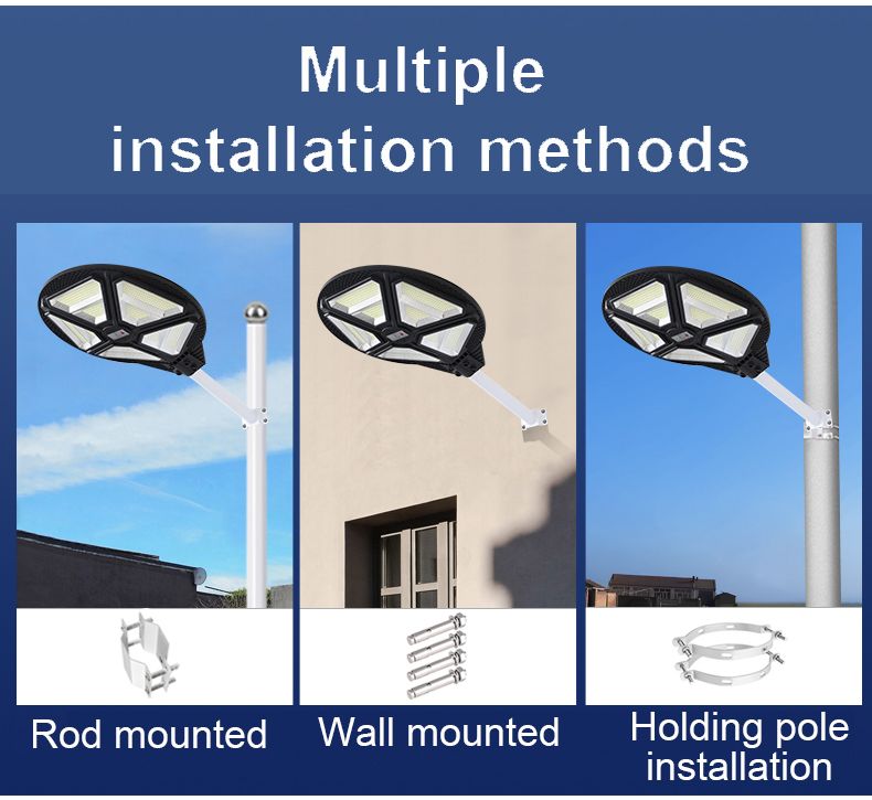 | Đèn đĩa bay UFO Loại/Số hiệu:JY-C059 Công suất/Watt: 800W Công suất tấm pin mặt trời/Size: 6V 20W (Silicon đa tinh thể loại A), 416*346mm Chất liệu/kích thước bóng đèn: ABS/637*554*70mm Dung lượng Pin: Pin lithium LIFEPO4 3.2V 20AH LED chip: 5730 Led,850/PCS Hiệu suất đèn Luninous: 120LM/W Nhiệt độ màu sắc: 3500K-7500K Tiêu chuẩn chống nước: IP65 Diện tích chiếu sáng:80㎡ Thời gian sạc Pin: 5-6 giờ (thời tiết bình thường) Thời gian chiếu sáng: 12-15 giờ, 2-3 ngày nồm ẩm. Bảo hành: 2 năm Độ cao lắp đặt: 3-4m Chế độ điều khiển:Điều khiển quang học + Điều khiển từ xa+cảm ứng radar |