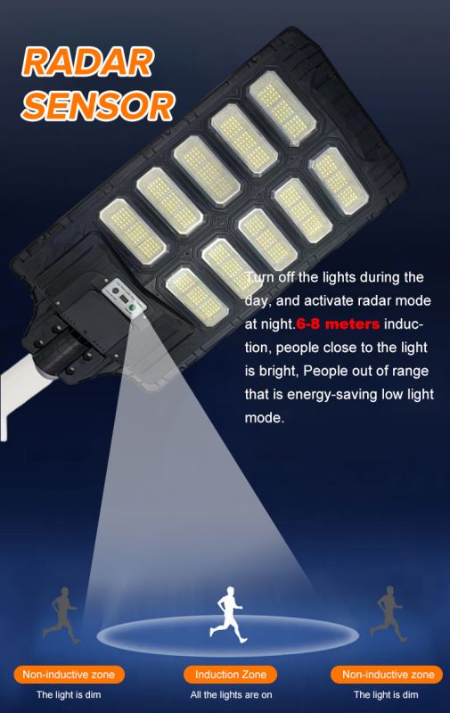 | Loại/Số hiệu:JY-C023 Nguồn:500W 10mắt Công suất tấm pin mặt trời/Size: 6V 28W (Silicon đa tinh thể loại A), 350*590mm Chất liệu/kích thước bóng đèn: ABS/706*362*67mm Dung lượng Pin: Pin lithium LIFEPO4 3.2V 30AH LED chip: 5730 Led,600/PCS Hiệu suất đèn Luninous: 120LM/W Nhiệt độ màu sắc: 3500K-7500K Tiêu chuẩn chống nước: IP65 Diện tích chiếu sáng: 250㎡ Thời gian sạc Pin: 5-8 giờ (thời tiết bình thường) Thời gian chiếu sáng: 12-15 giờ, 2-3 ngày nồm ẩm. Bảo hành: 2 năm Độ cao lắp đặt: 5-7m Chế độ điều khiển:Điều khiển quang học + Điều khiển từ xa+cảm ứng radar |